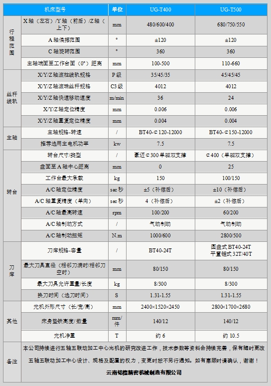 機(jī)型:UG-T400、UG-500(天車式五軸系列)